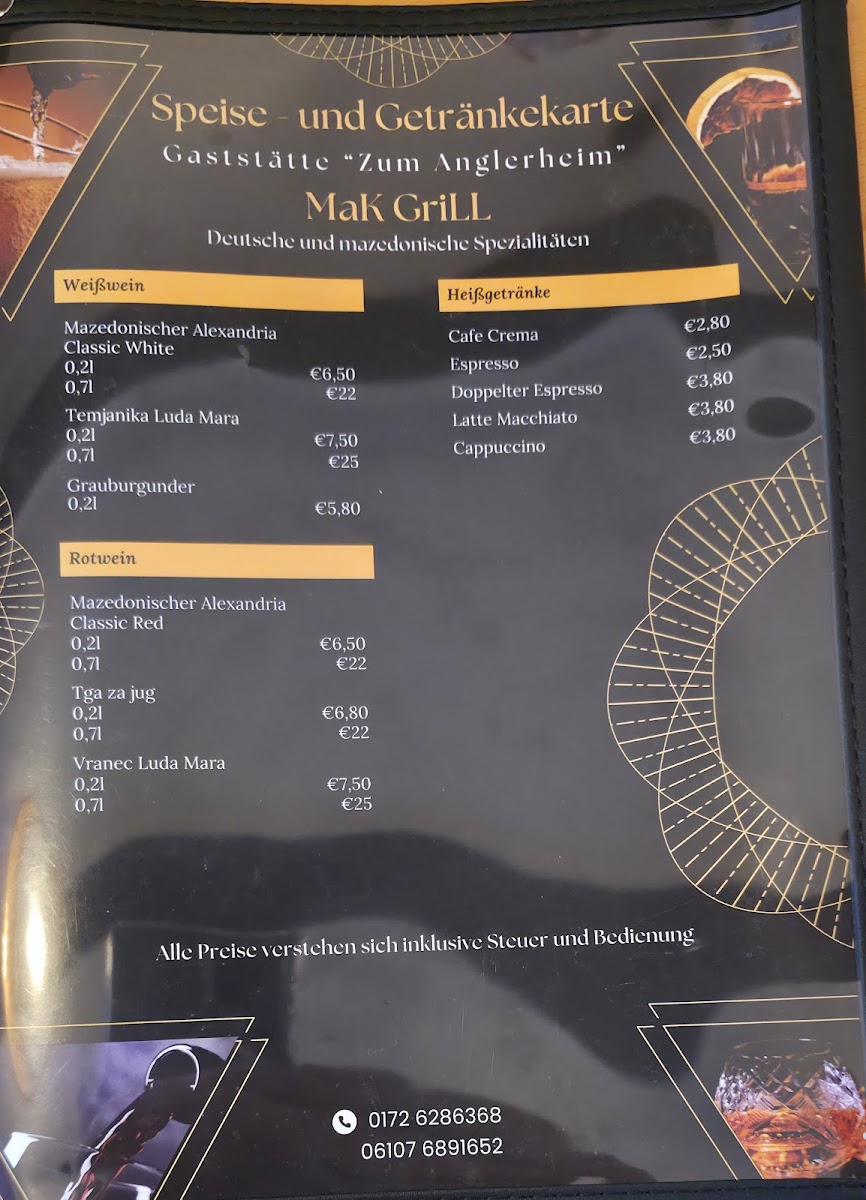 The standout feature of the menu is the unique dining experience offered by steaks cooked on hot stones, allowing guests to customize their preferred doneness at the table—a true treat for meat lovers. The menu boasts robust wines like the Mazedonischer Alexandria Classic Red, ensuring the perfect pairing with your meal.